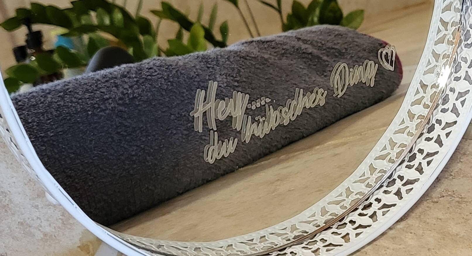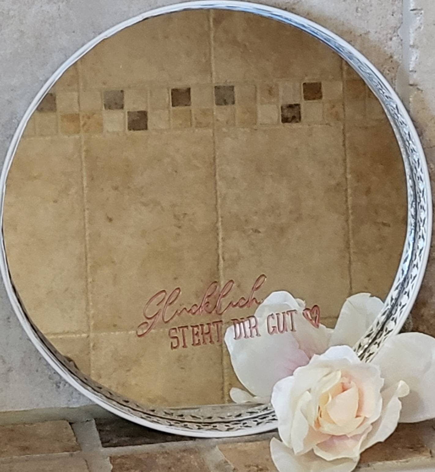 Wenn du deinen eigenen Spruch möchtest oder eine spezielle Größe, dann ist das natürlich auch kein Problem. Schreibe mir vorab bitte eine kurze Email und wir besprechen die Details. Pro Bestellung ist immer ein Aufkleber enthalten, ohne Spiegel/Deko.